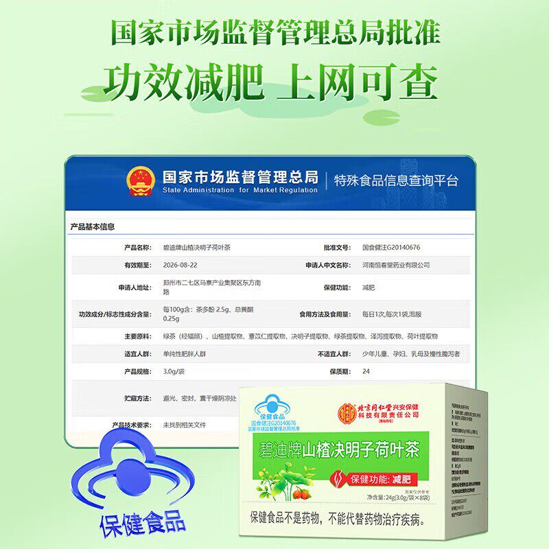 北京同仁堂碧迪牌山楂决明子荷叶减肥茶刮油去湿气排油瘦肚子全身