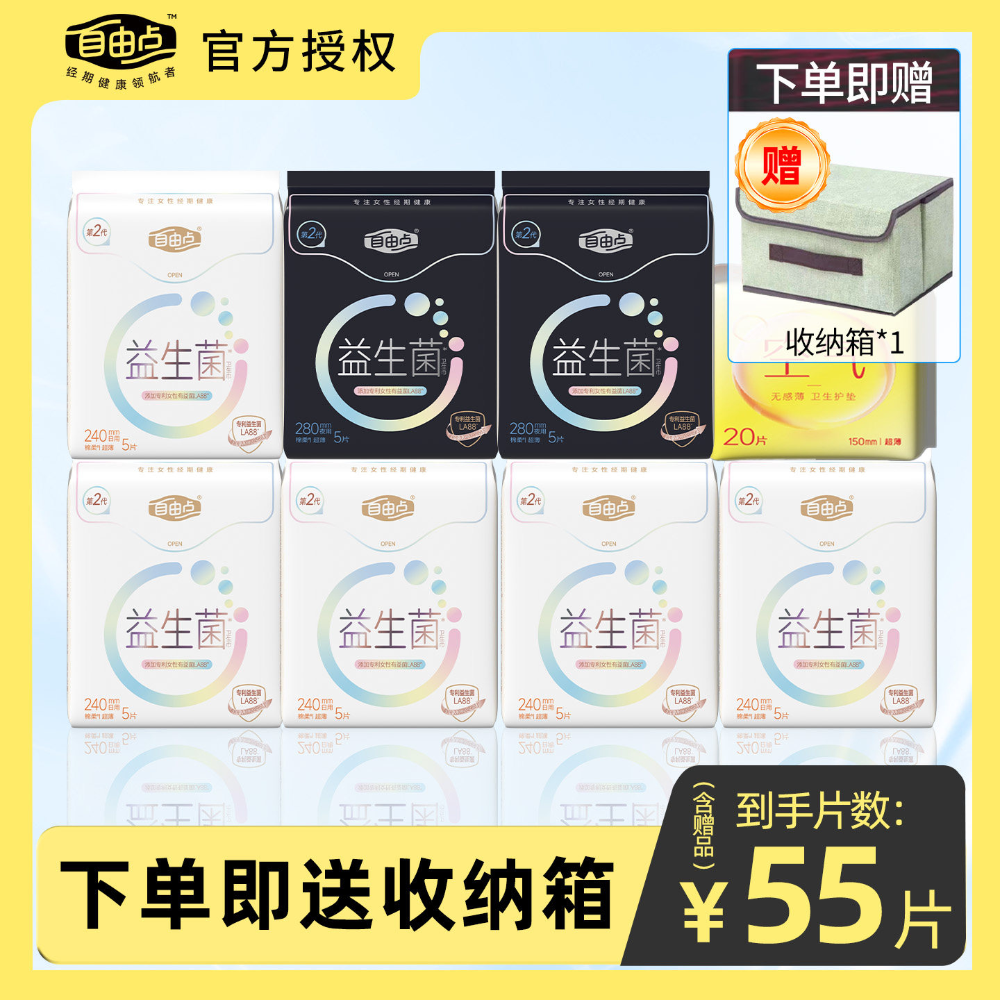 自由点益生菌姨妈巾卫生巾日用夜用组合装超薄学生官方旗舰店正品