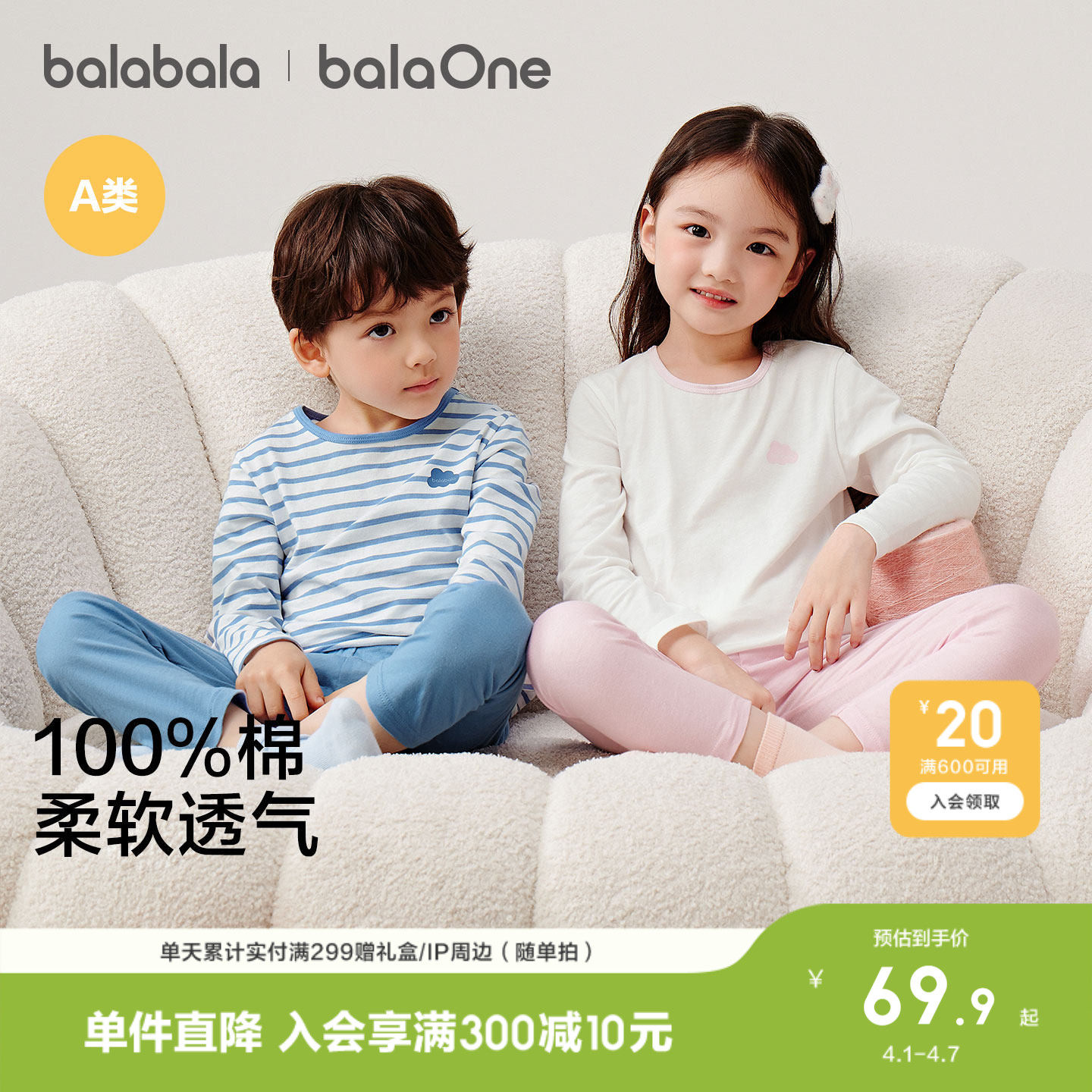 巴拉巴拉儿童内衣套装春秋薄男童秋衣秋裤女童宝宝打底衫睡衣纯棉