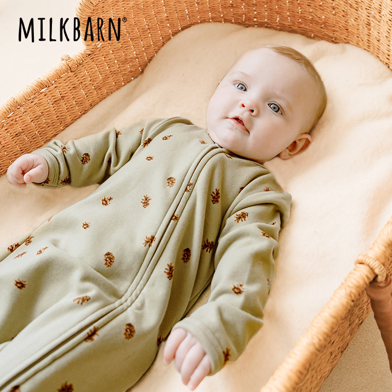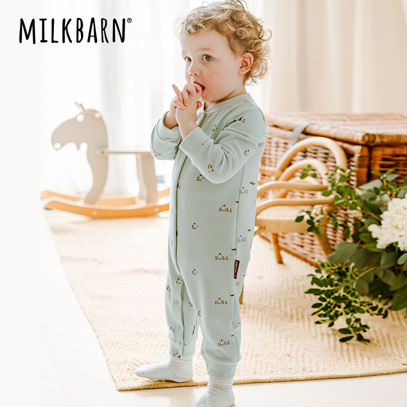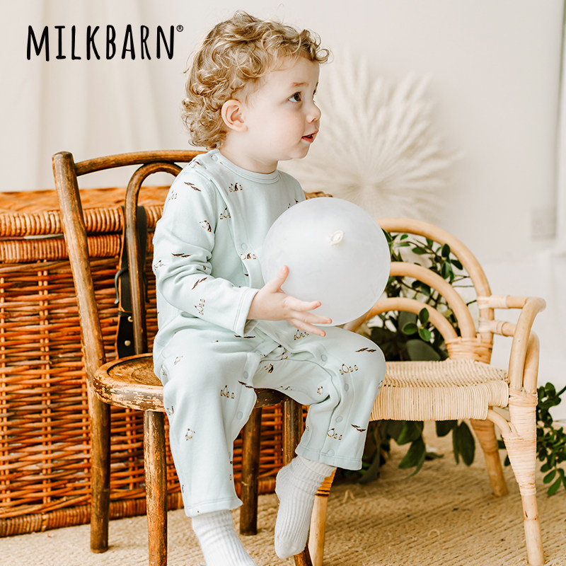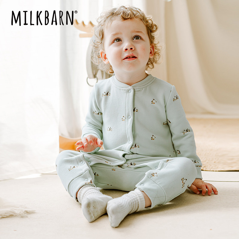 Milkbarn秋冬新品婴儿长袖连体服宝宝包脚衣服新生儿哈衣爬服