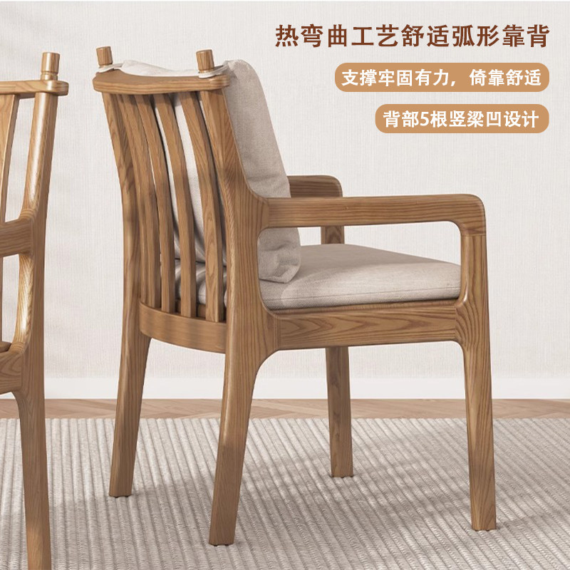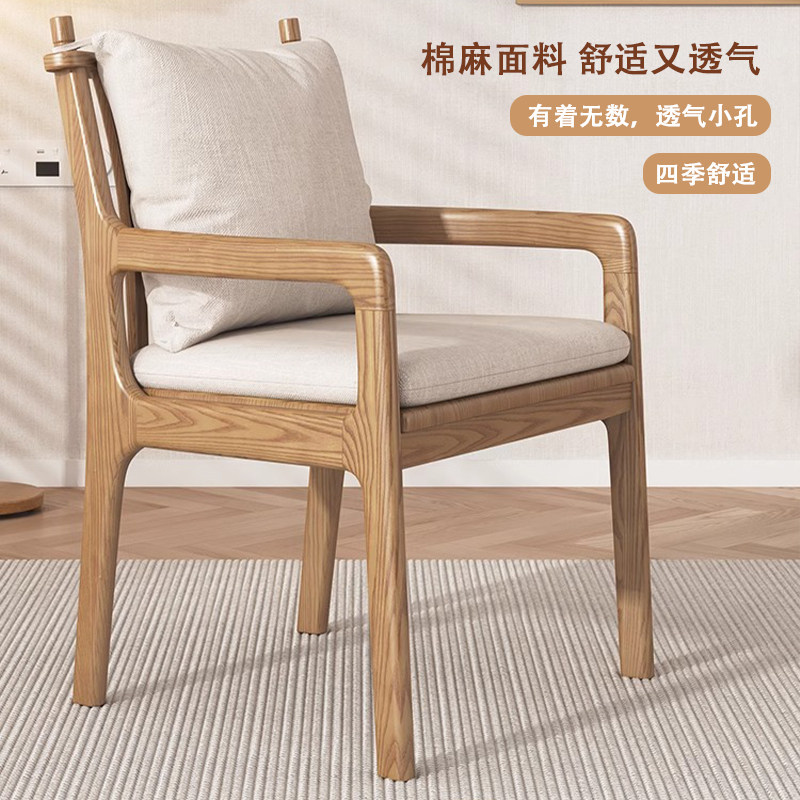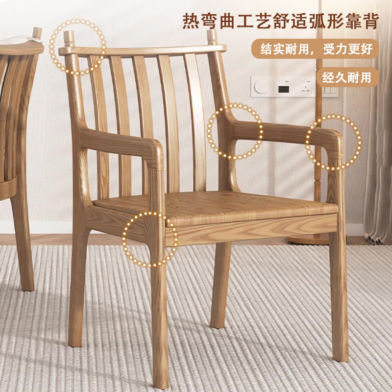北欧全实木餐椅日式餐厅白蜡木电脑椅民宿书桌椅带扶手休闲椅