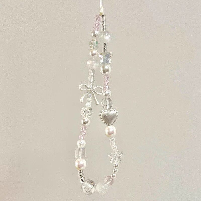 银色系蝴蝶结手机链手腕挂饰珠串挂件原创挂绳高级感挂链个性链条