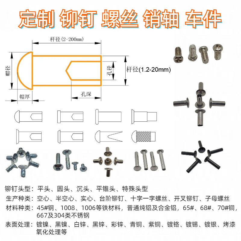 钛铆钉平头中空钉半空心铆钉圆头钛合金铆钉沉头实心镀锌镀镍箱包
