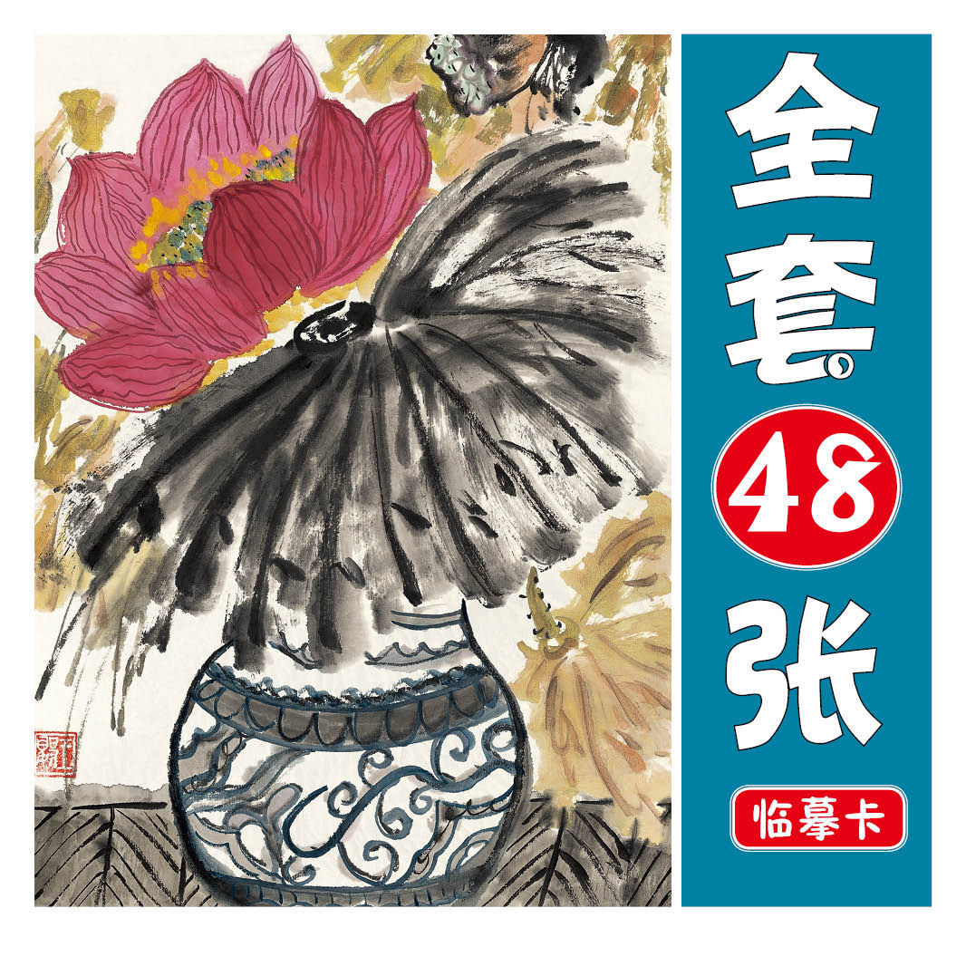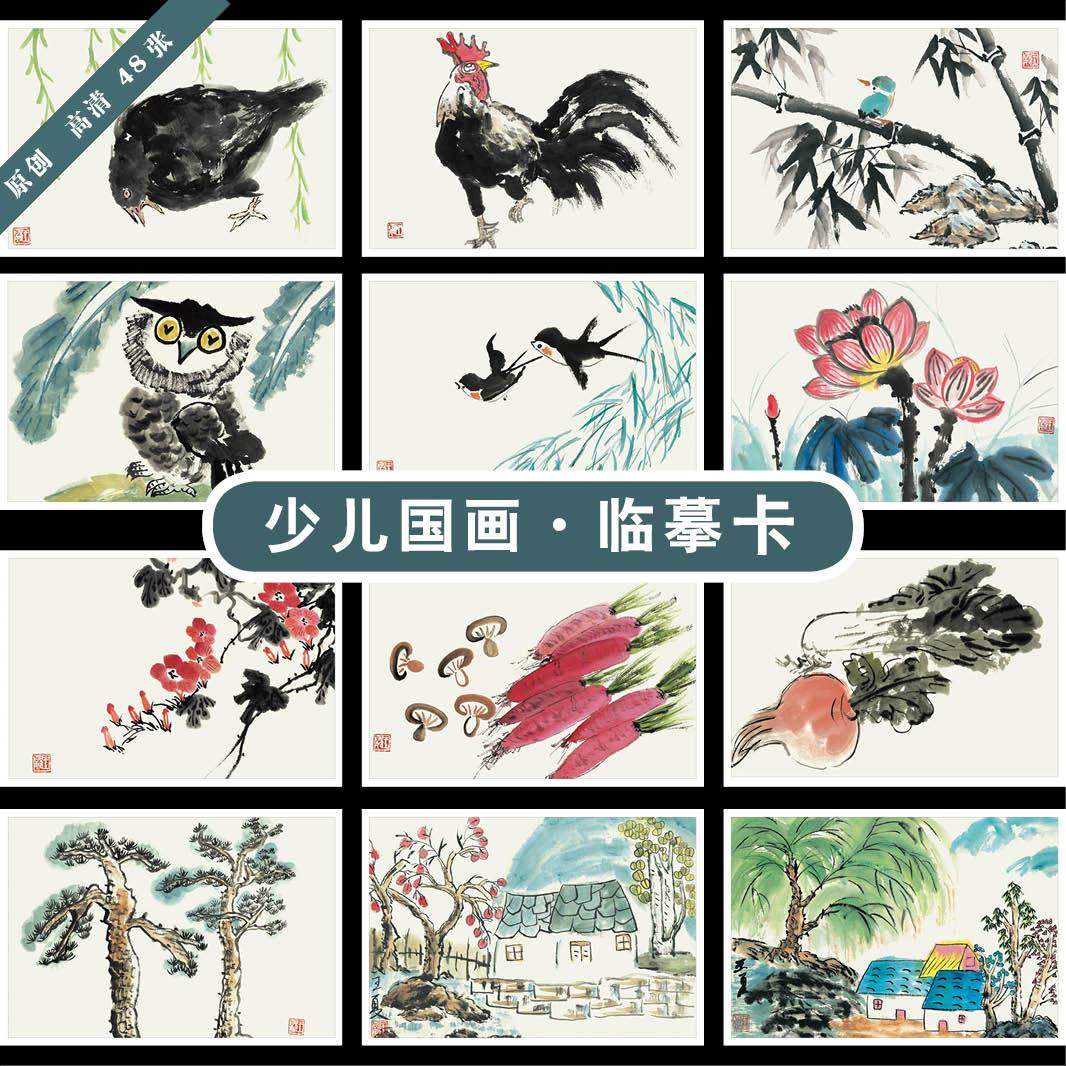 儿童国画美术临摹卡创意写意花鸟山水画临摹大图少儿国画卡片48张