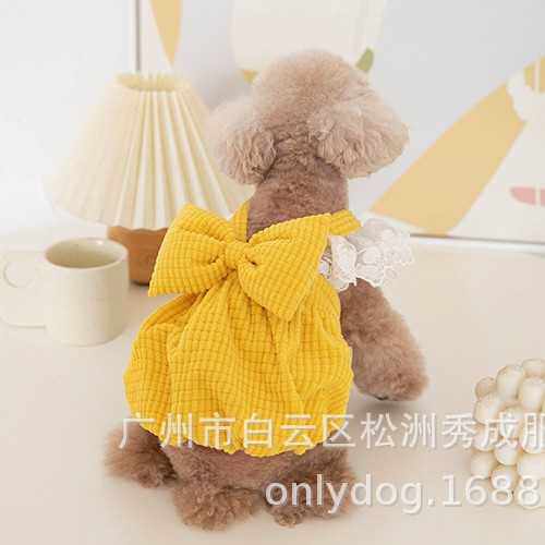 唯宠小镇*胖蝴蝶结南瓜裙子宠物衣服猫狗服饰泰迪比熊外套背带裙
