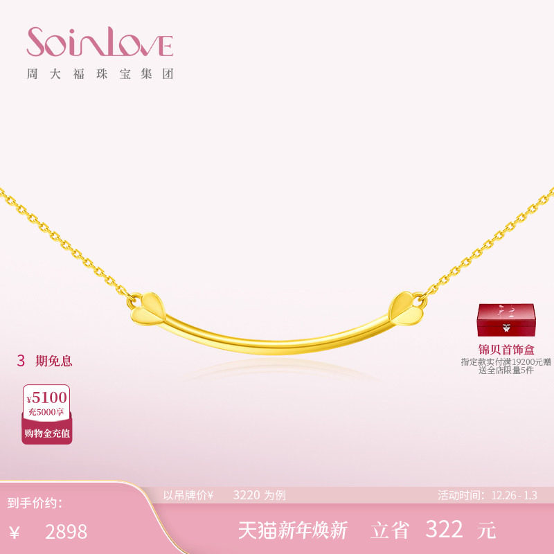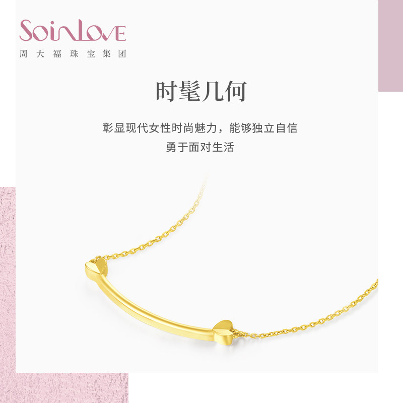 周大福SOINLOVE「极简」折纸爱心项链18K金项链女VE176生日礼物