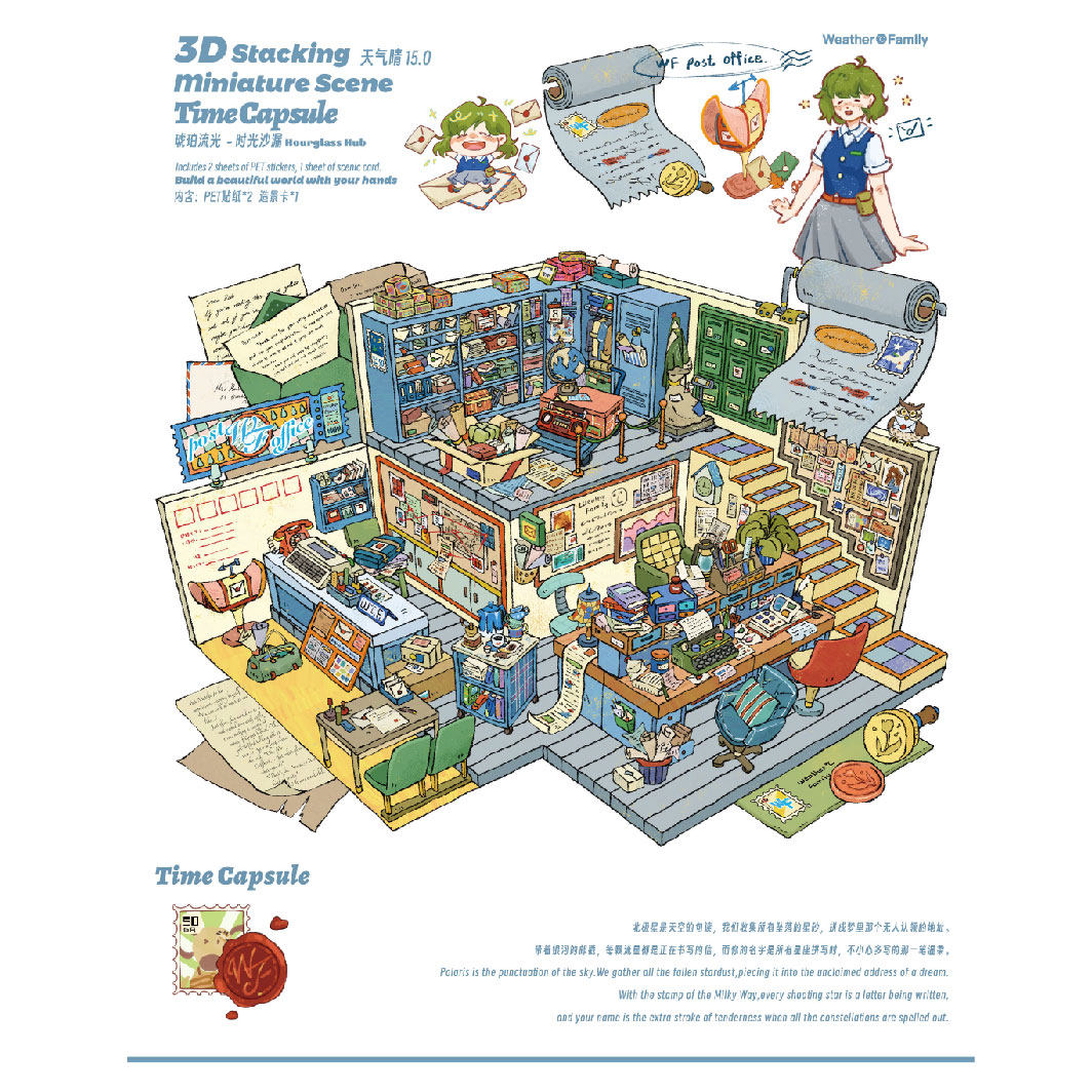 天气晴15.0琥珀流光造景贴纸 复古插画风微缩场景立体小屋拼贴纸