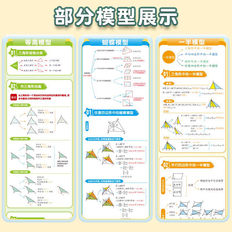 【3张】图解小学几何八大模型挂图四五六年级小升初图形强化练习