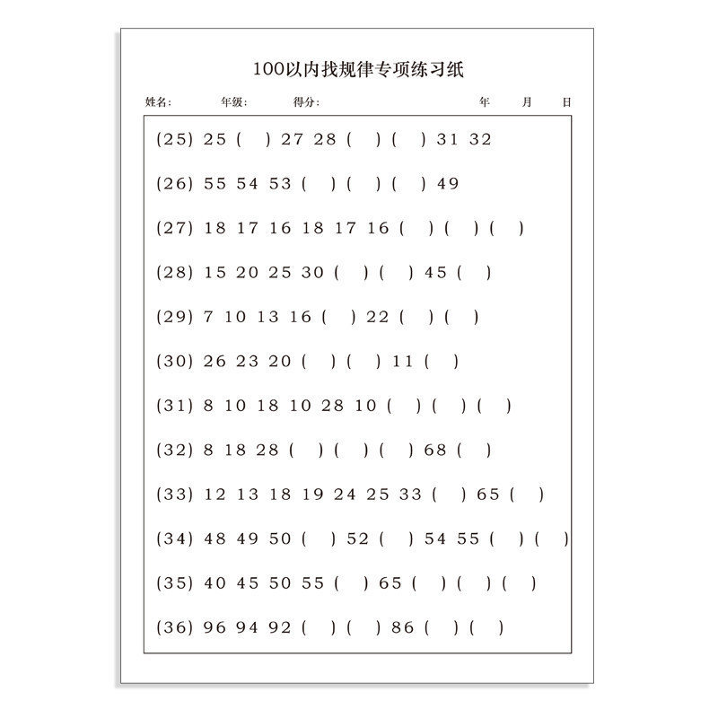 幼小衔接百数表练习小学生100以内找规律练习相邻数练习0-100数字挂图数学启蒙数学思维练习题训练纸幼儿园