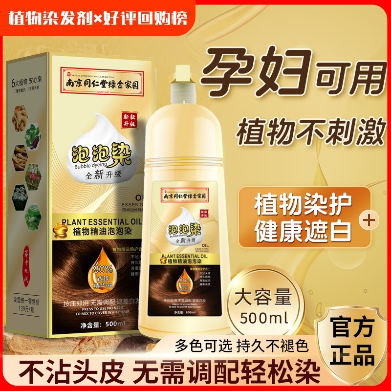 同仁堂染发剂泡泡染纯植物一洗黑无刺激正品黑色染发膏官方旗舰店
