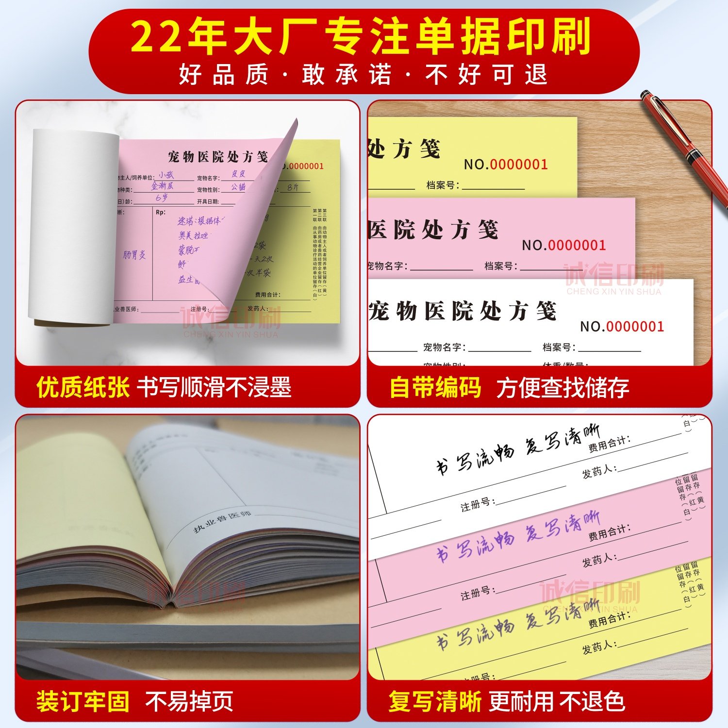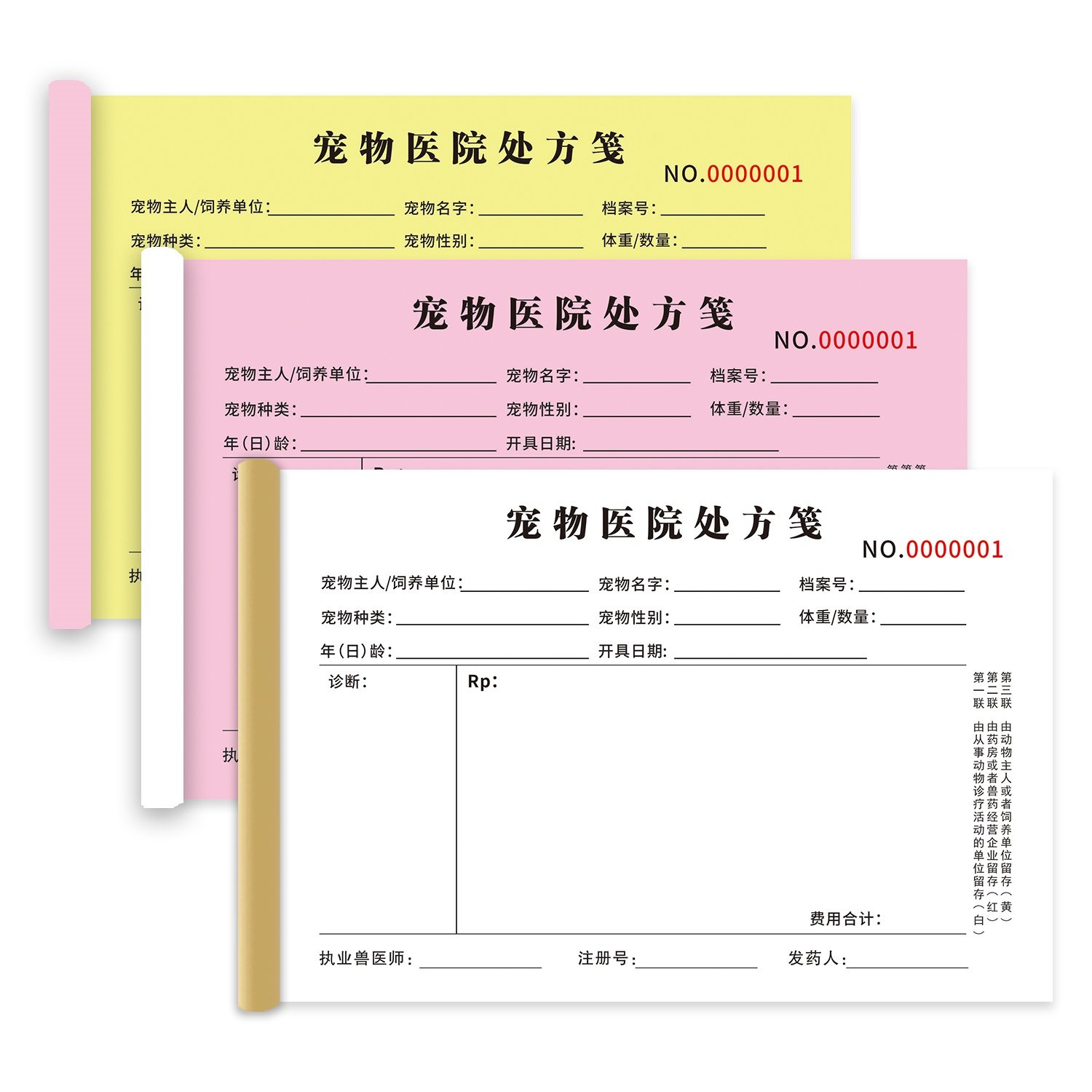 新货三联宠物医院处方笺兽医动物医疗处方签登记本猫狗治疗费用单