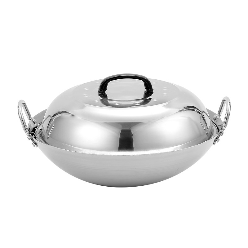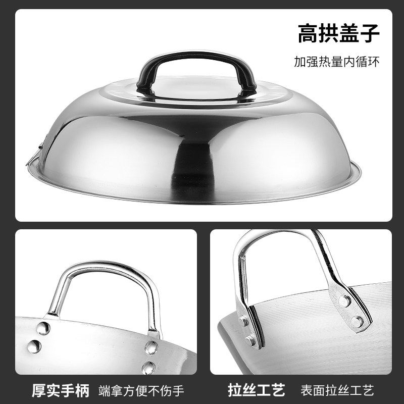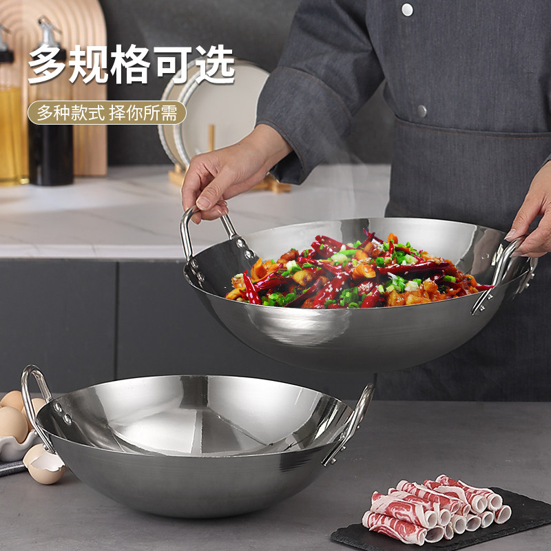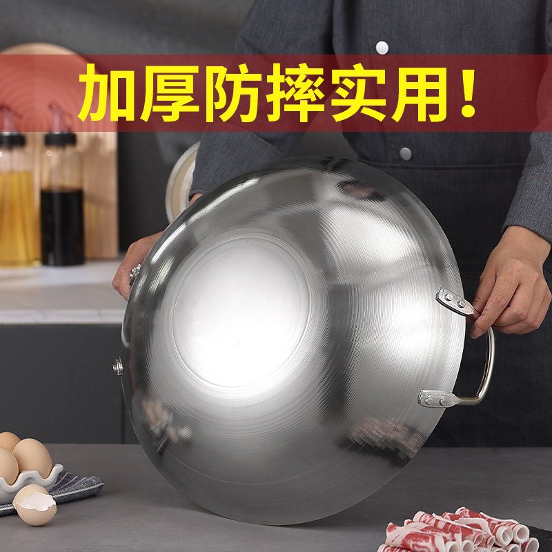 特厚无磁不锈钢炒锅特大32-100cm双耳圆底爆炒鼎商用食堂农村大锅