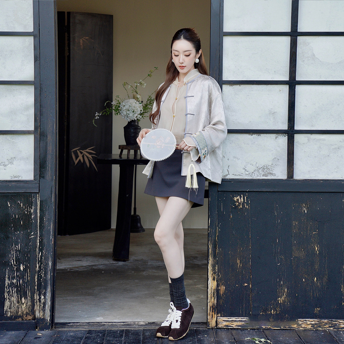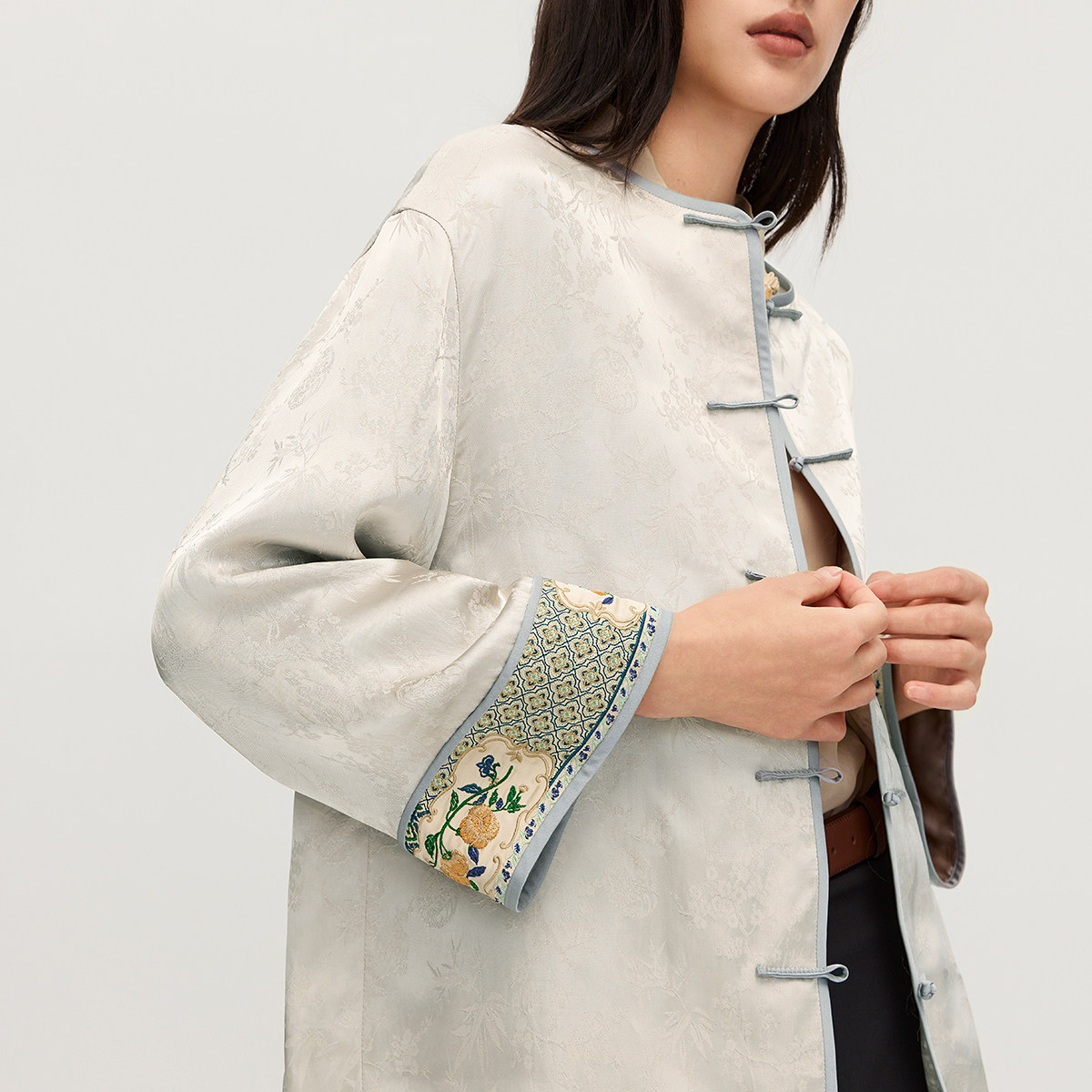 【新品】OCHIRLY欧时力 缎面提花新中式盘扣外套对襟刺绣2025秋季