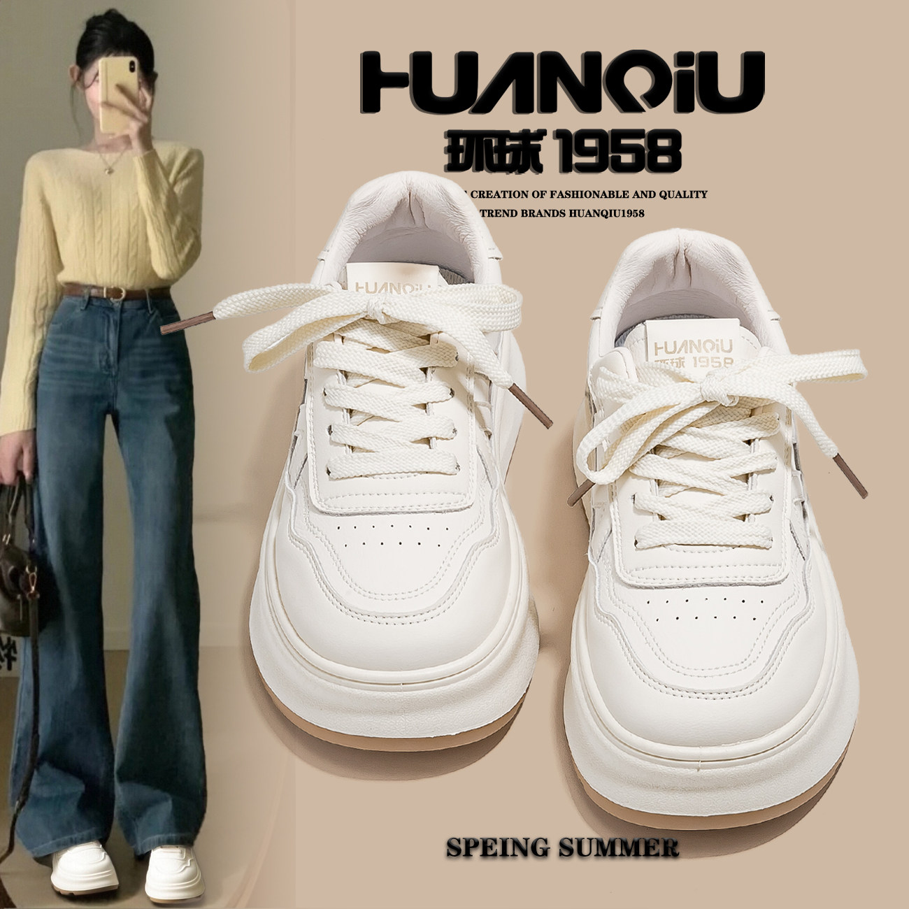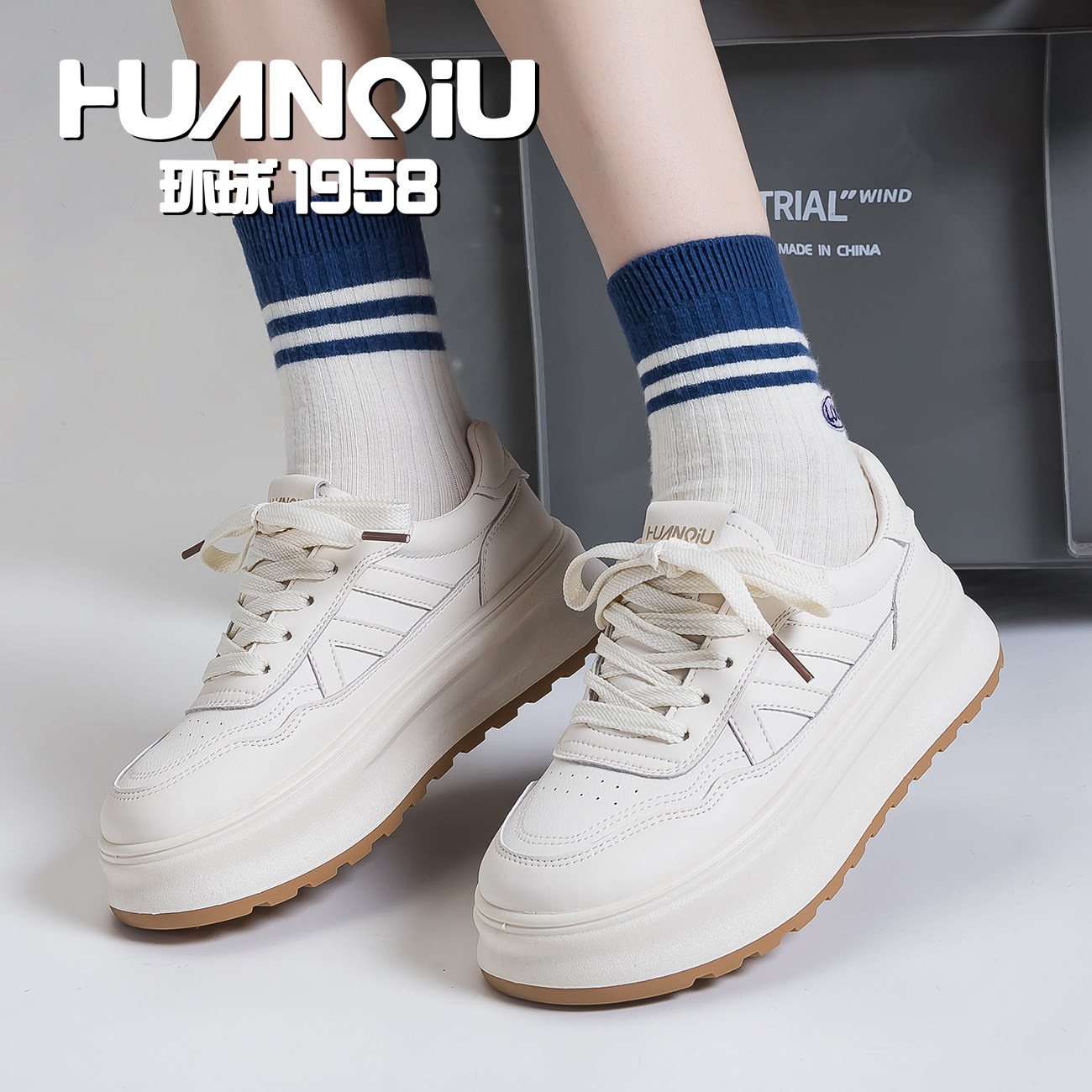 环球松糕厚底增高板鞋女2026春季新款休闲百搭超轻软底学生小白鞋
