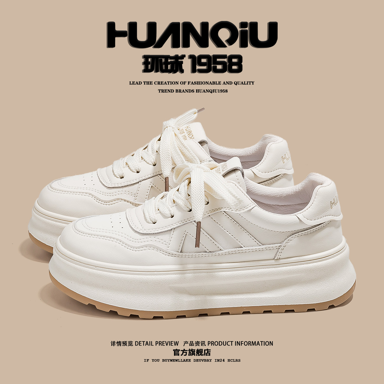 米白色原创小众厚底面包鞋女百搭运动休闲板鞋学生小白鞋2025新款