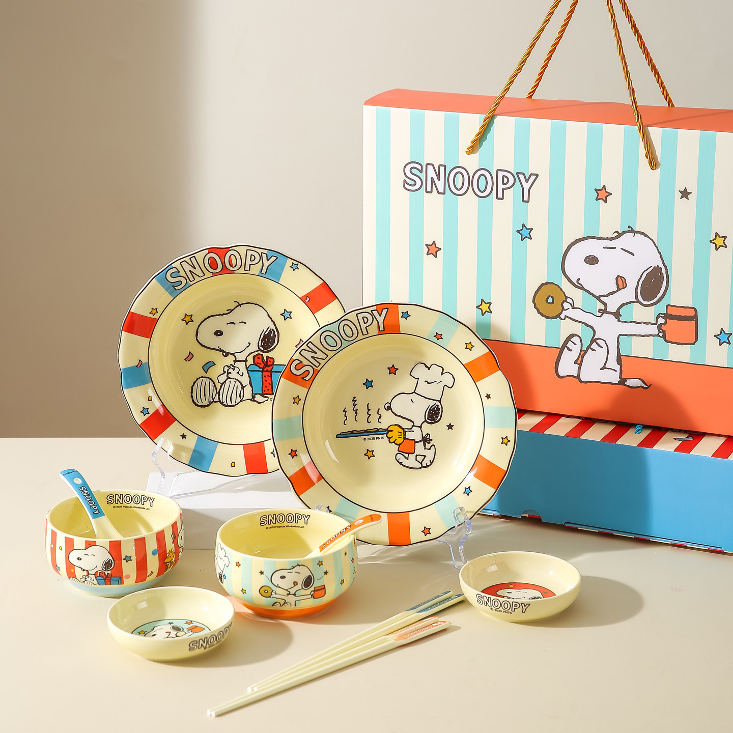 川岛屋史努比周边一人食餐具礼盒碗碟套装可爱碗盘生日礼物伴手礼