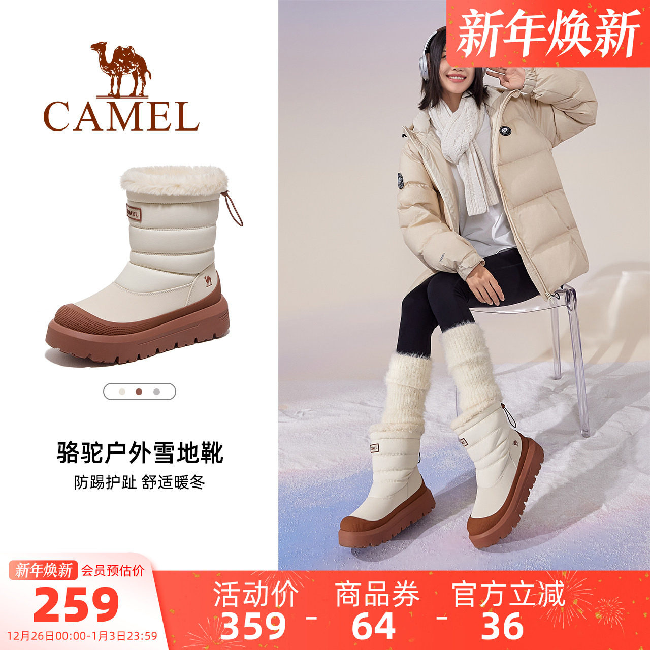骆驼雪芙雪地靴女鞋2025冬季新款户外加绒保暖棉鞋女款厚底短靴子