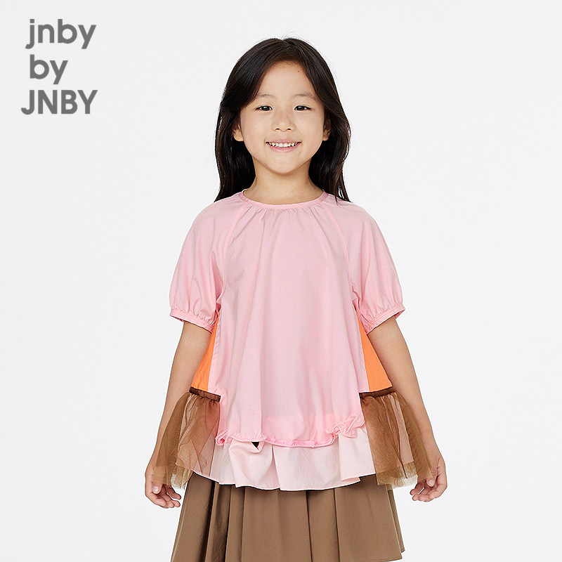 江南布衣童装短袖衬衫可爱中袖圆领拼接A型夏女童jnbybyjnby