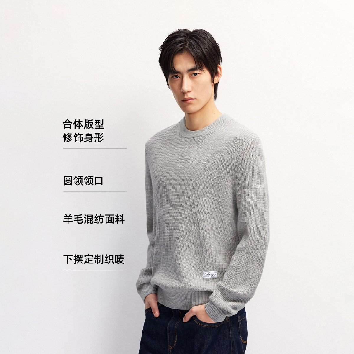 杰克琼斯奥特莱斯男装秋季毛衣针织衫可机洗羊毛面料通勤长袖上衣