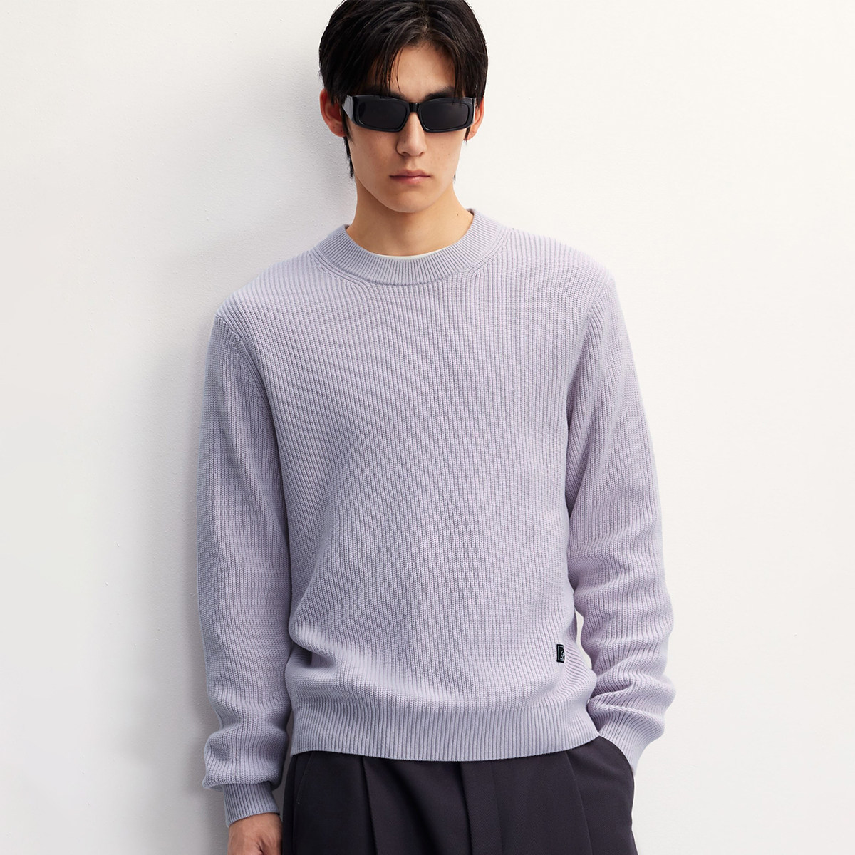 森马毛衫男冬季满版提花针织衫撞色毛衣宽松套头衫百搭提花潮-TK