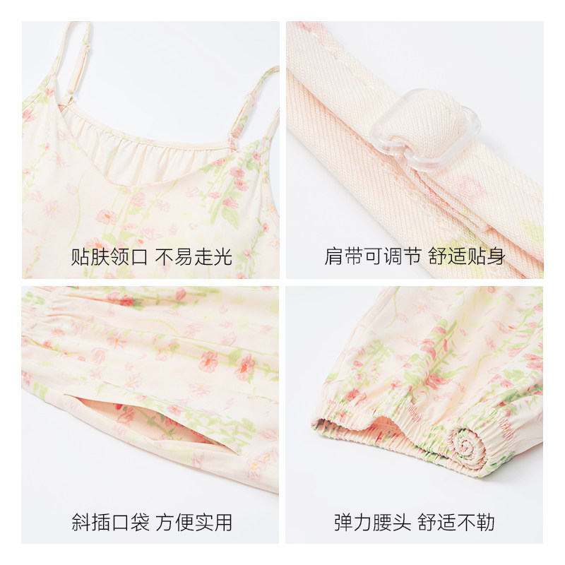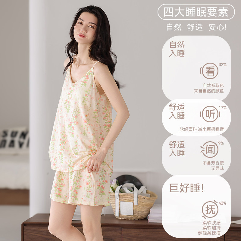 都市丽人吊带睡衣短裤夏天女莫代尔自带胸垫套装薄款家居服可外穿