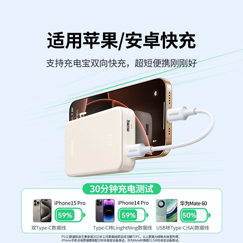 绿联充电宝短数据线双typec手机充电线适用苹果17/16iPhone15promax14华为小米usbc转快充电超短款专用ctoc口