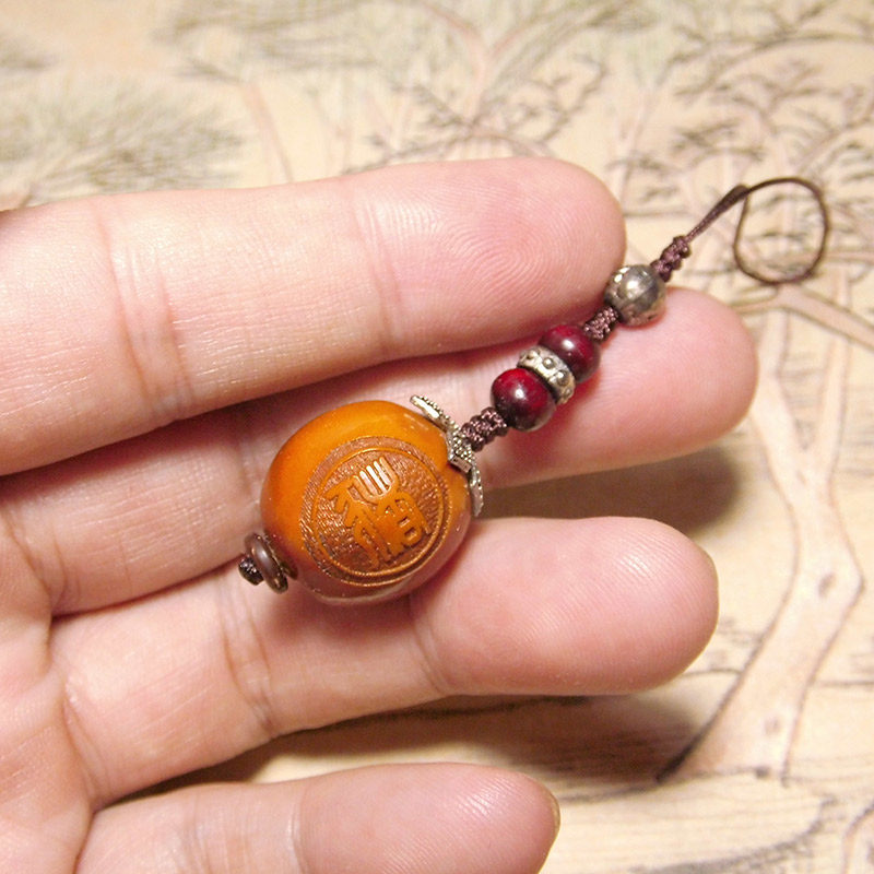 橄榄核雕生肖手机链挂坠中国风U盘挂绳扇坠包挂男女短款饰品1630