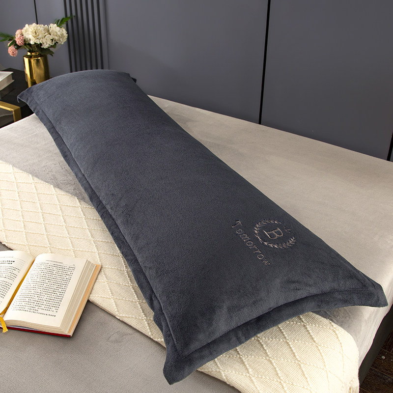 牛奶绒双人长枕头带枕套长款一体1.2米1.5m1.8情侣婚庆家用长枕套