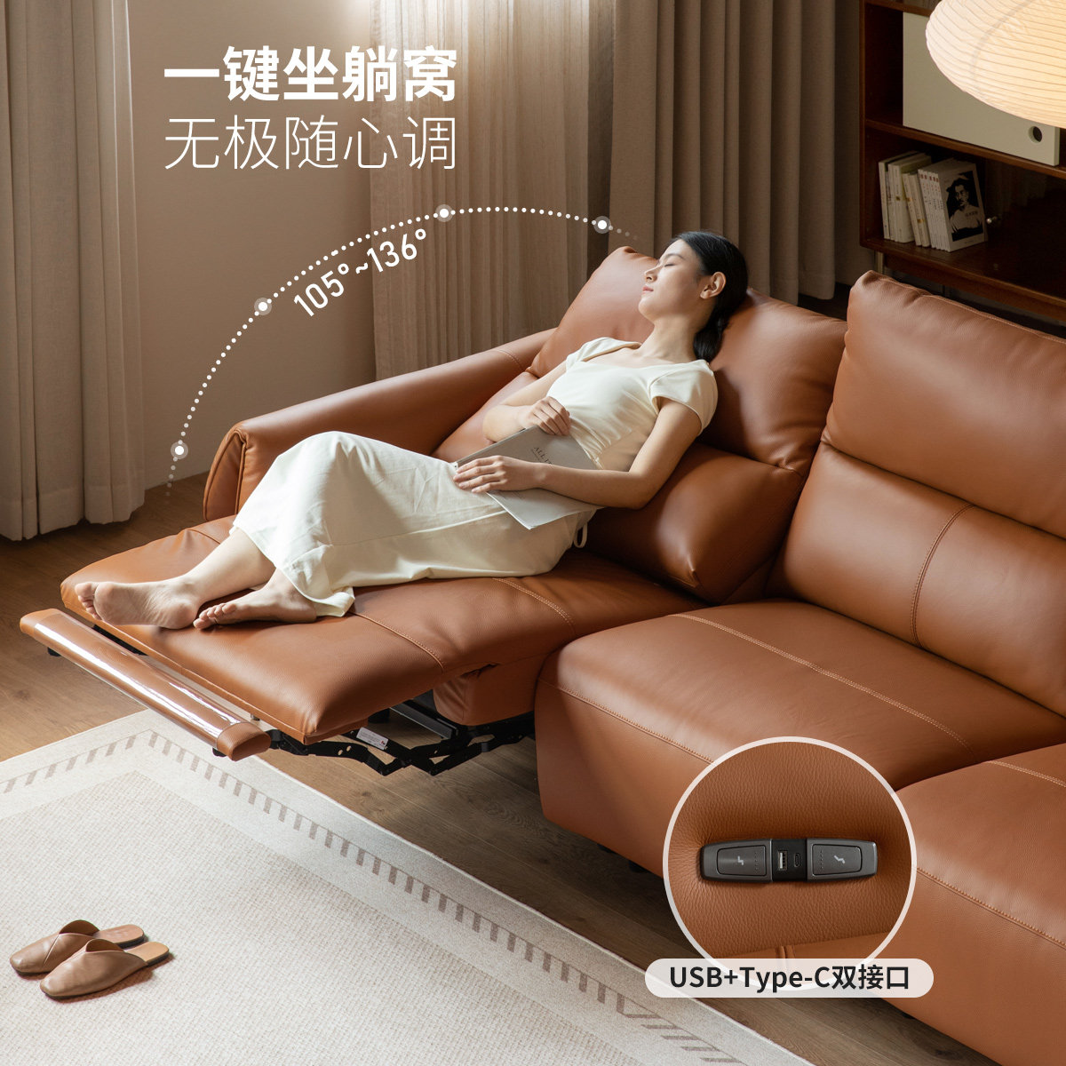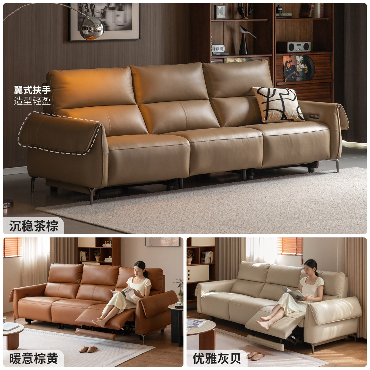 左右沙发政府补贴真皮电动客厅功能棕色2025新款官方旗舰店6055