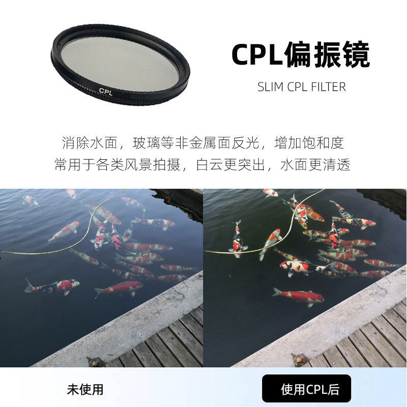 句宸 67mm大口径手机CPL偏振镜偏光镜去除水面反光拍观赏鱼拍纹身增加饱和度水更透