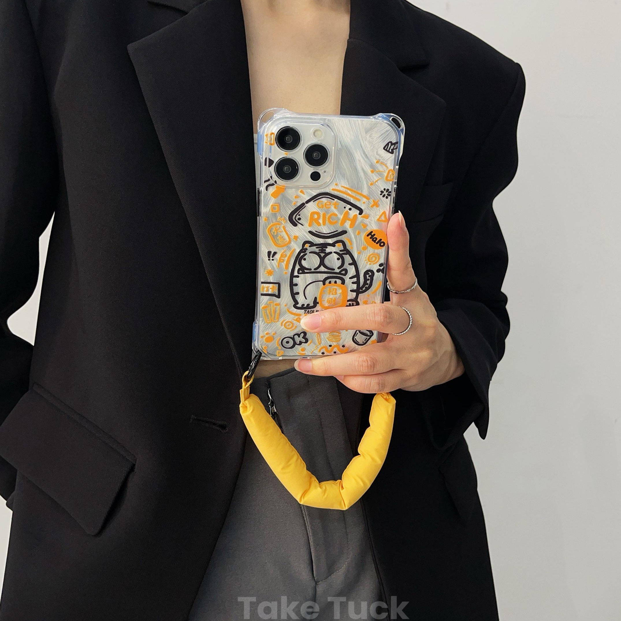 适用iPhone16ProMax钱多多老虎手机壳挂绳斜跨17Promax透明镭射防摔适用华为mate60pro硅胶全包软壳旅行送人