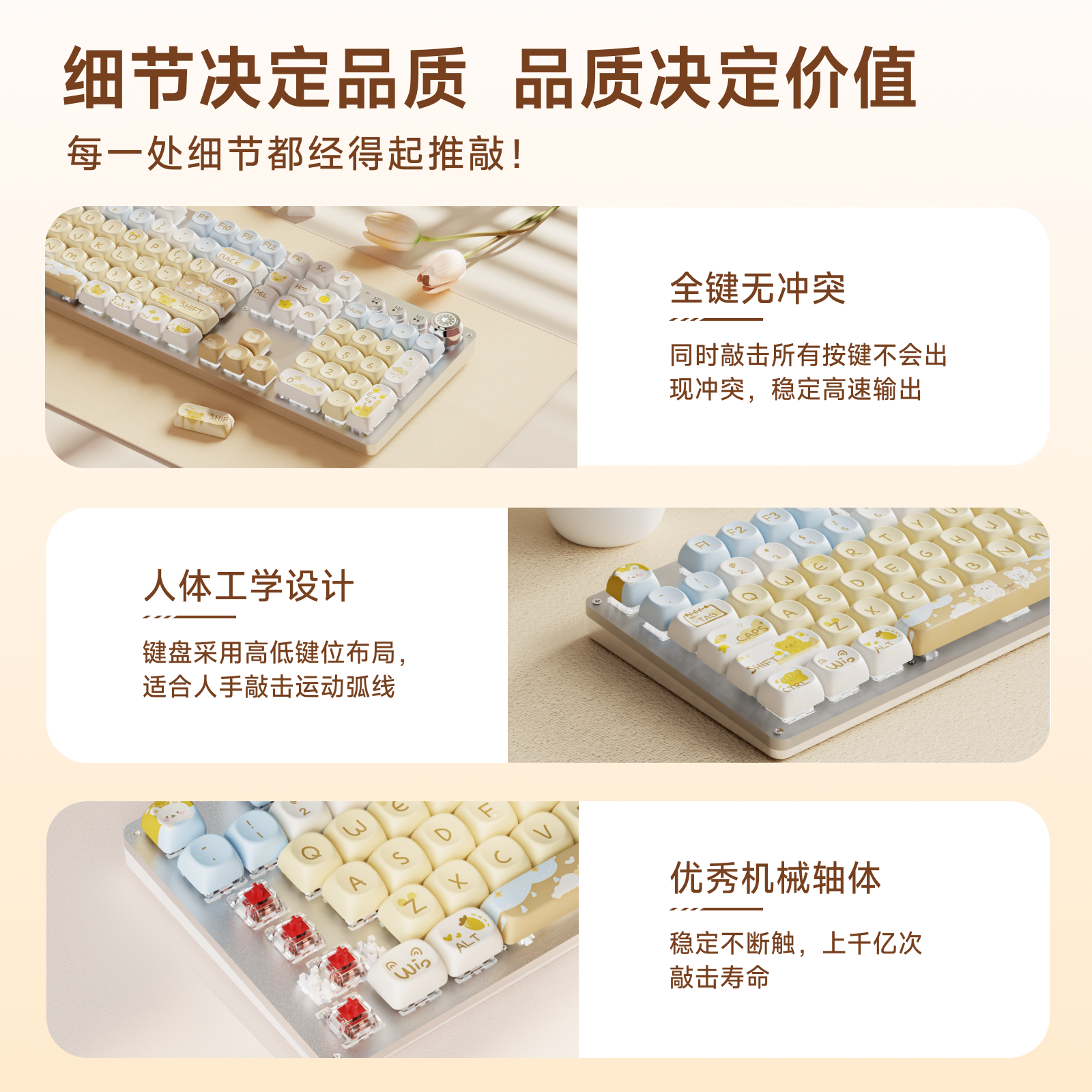 前行者奶茶小熊无线机械键盘鼠标套装蓝牙女生办公专用高颜值可爱