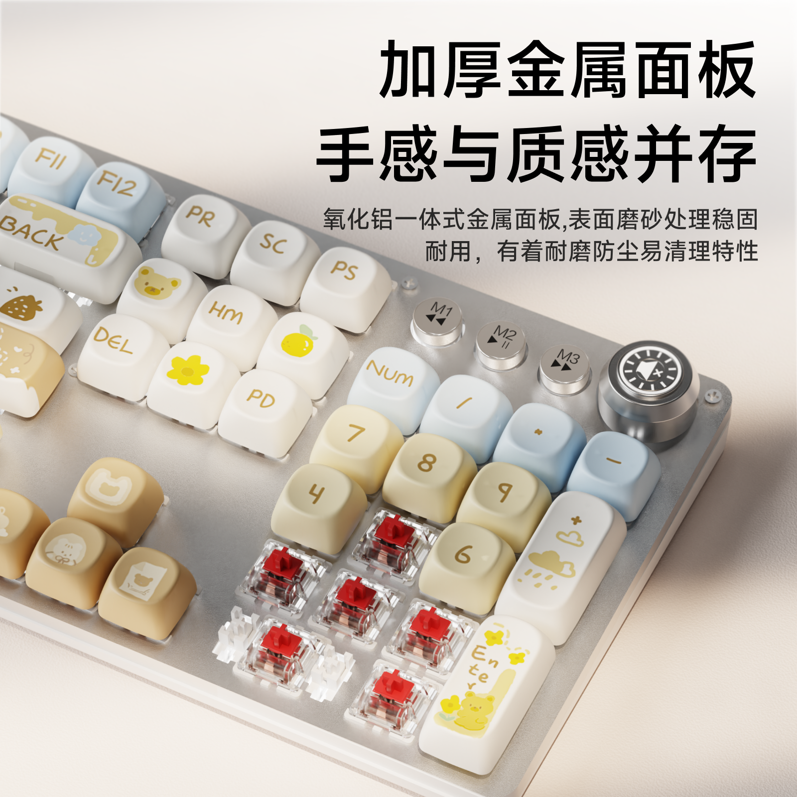 自带多功能旋钮 真机械轴体 全键无冲 可爱