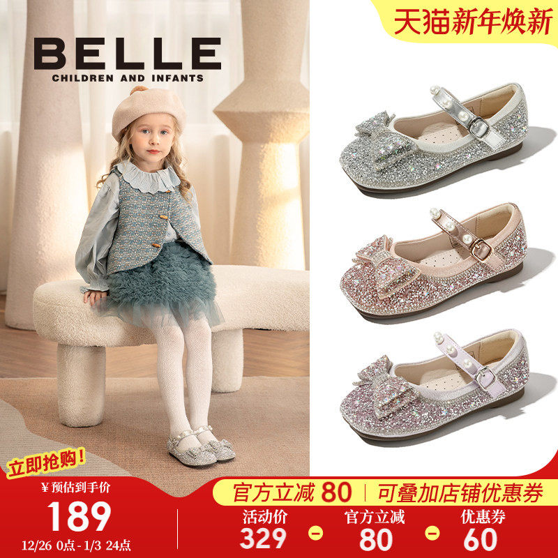 百丽童鞋女童公主鞋秋冬新款宝宝鞋小女孩水晶鞋儿童水钻珍珠单鞋