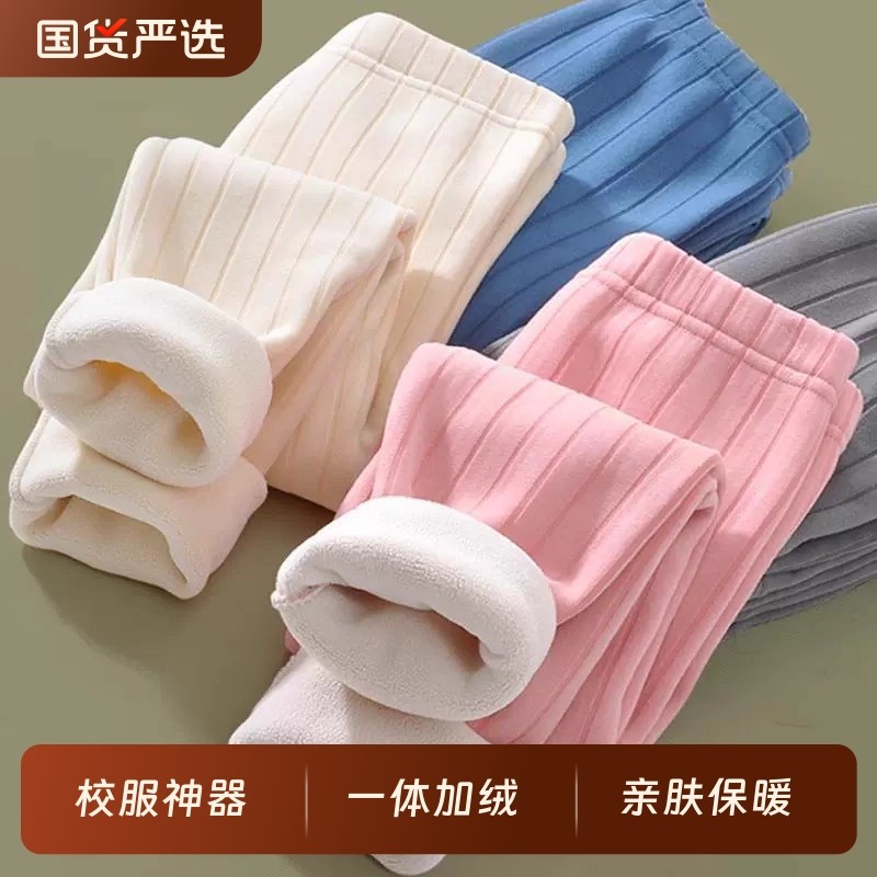 儿童保暖裤一体绒男童校服神器睡裤秋冬季女童加绒加厚内穿裤子冬