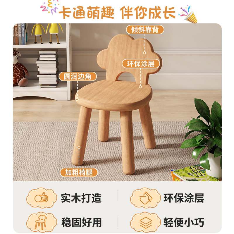 全实木云朵小凳子家用客厅茶几矮凳换鞋凳儿童宝宝靠背小板凳橡木