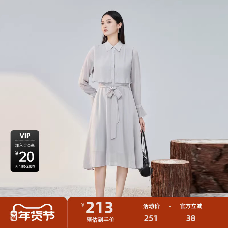 sdeer圣迪奥女装秋风琴褶收腰雪纺衬衫连衣裙S223Z123L