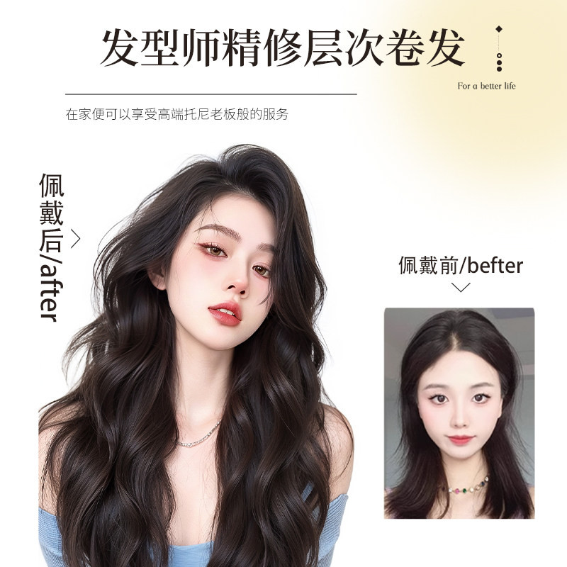假发片女一片式增发量蓬松隐形法式高层次大波浪长卷发接发片长发