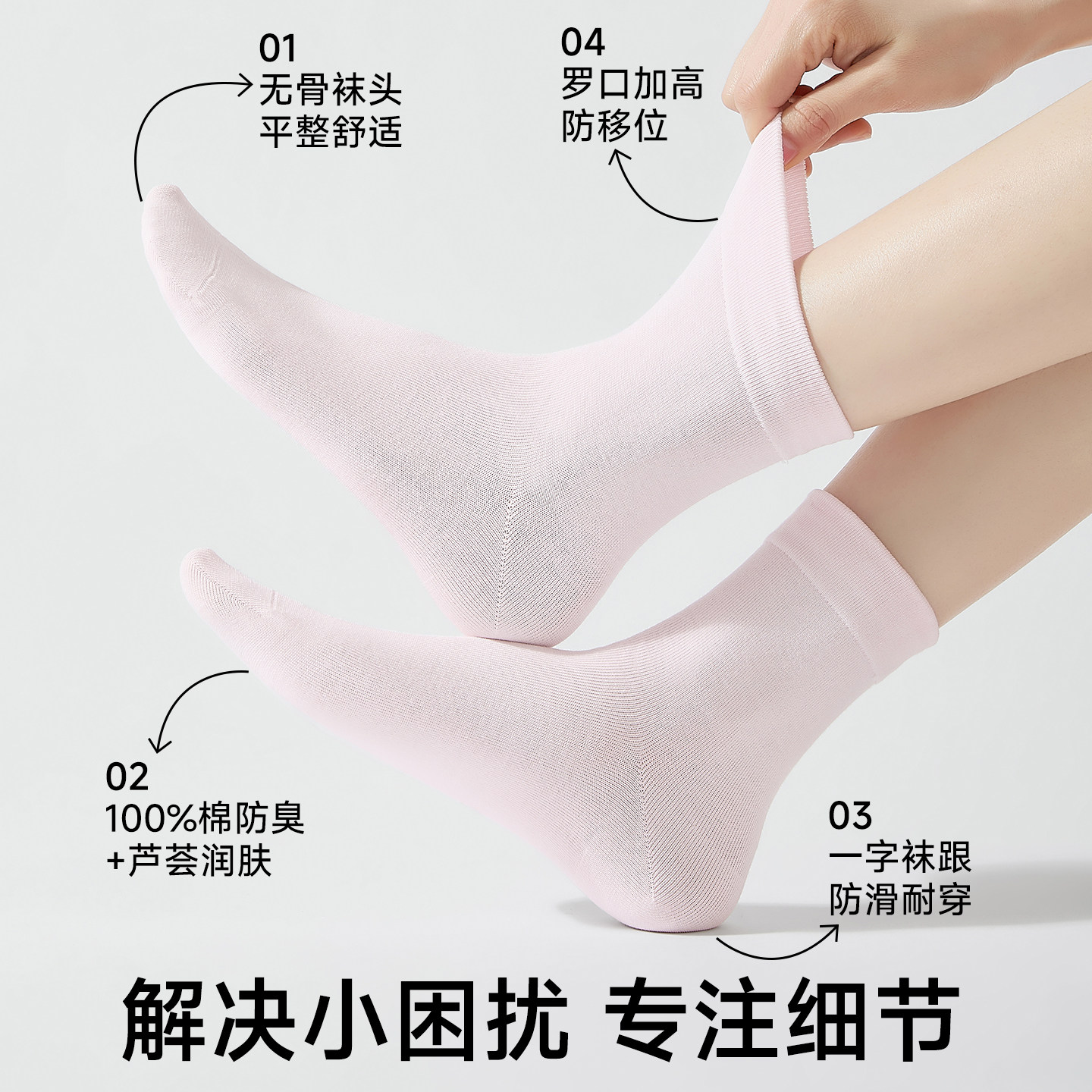袜子女款纯棉中筒袜秋冬季抗菌防臭吸汗运动棉袜春秋款无骨短筒袜