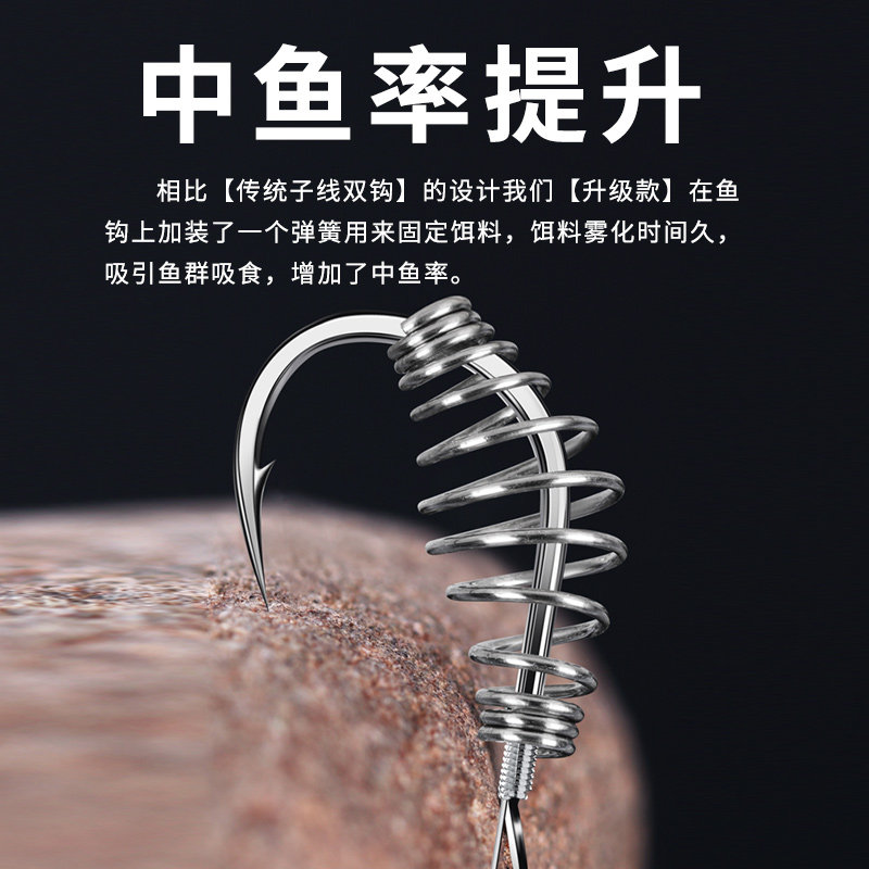 威拓森鲢鳙新关东子线双钩钓组鱼钩弹簧成品弹正品专用钩原丝