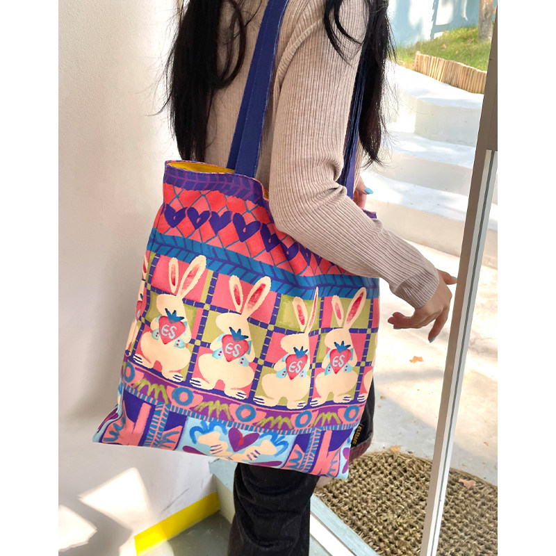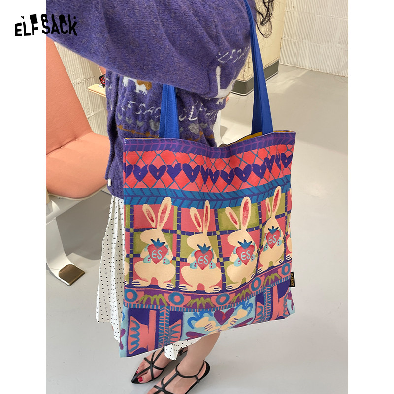妖精的口袋复古满印大容量单肩包2025年新款设计感休闲独特手提包