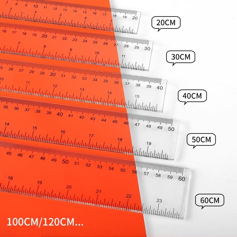 高精度透明塑料直尺超长尺20/30/40/50/60/100/120cm多规格尺子套装加厚耐磨绘图测量尺划线尺学生用板尺文具