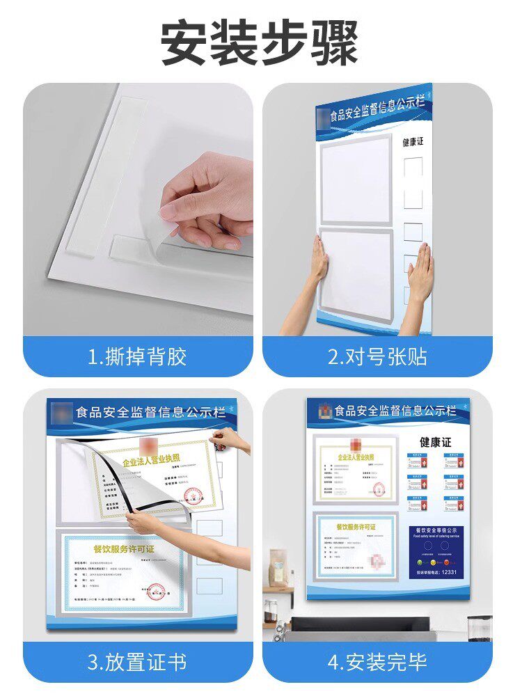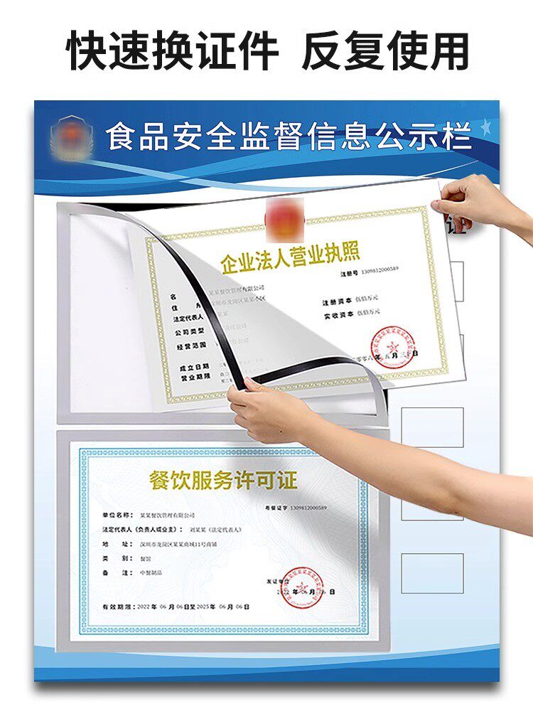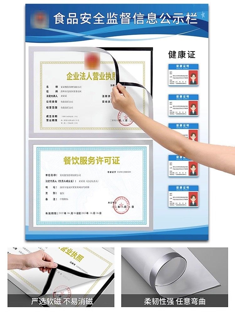 餐饮食品安全信息公示栏市场监督公示牌卫生经营健康许可证公示栏营业执照框三合一挂墙管理制度牌展示栏a3