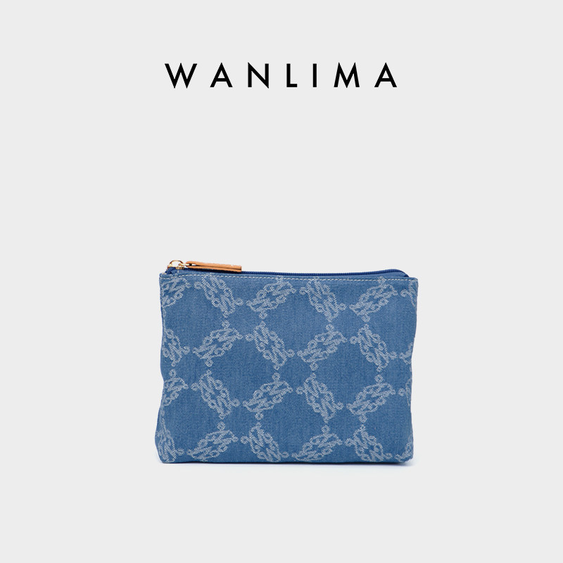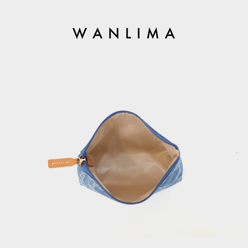 万里马丹宁牛仔化妆包便携旅行迷你随身包拉链大容量收纳手拿包