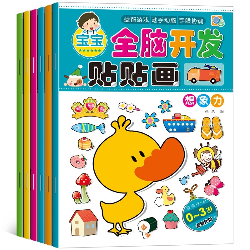 全脑开发贴贴画贴画书贴纸书专注力训练儿童益智玩具2-3-5-6岁4男女孩贴贴纸幼儿园宝宝换装/汽车//蒙氏数学/童话故事早教启蒙智力