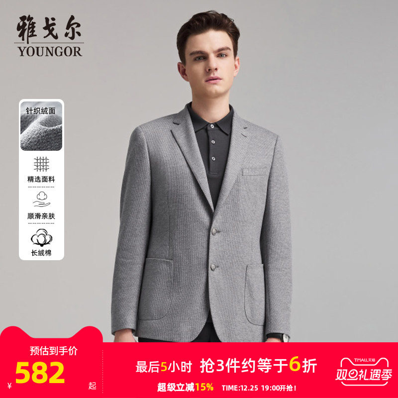 雅戈尔男士西服秋季新品商务休闲上班正装小花型针织弹力羊毛单西