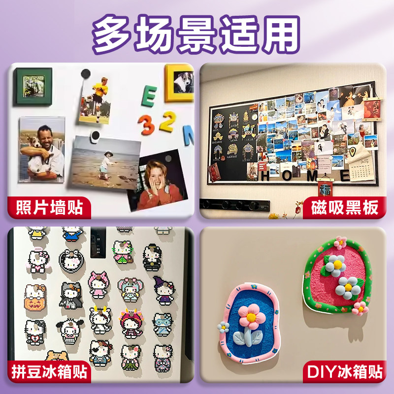 拼豆冰箱磁吸贴片磁力贴磁性黑板贴强力3M背胶软磁吸公开课白板书展示墙贴磁条磁贴教具卡片自粘上课用吸铁石