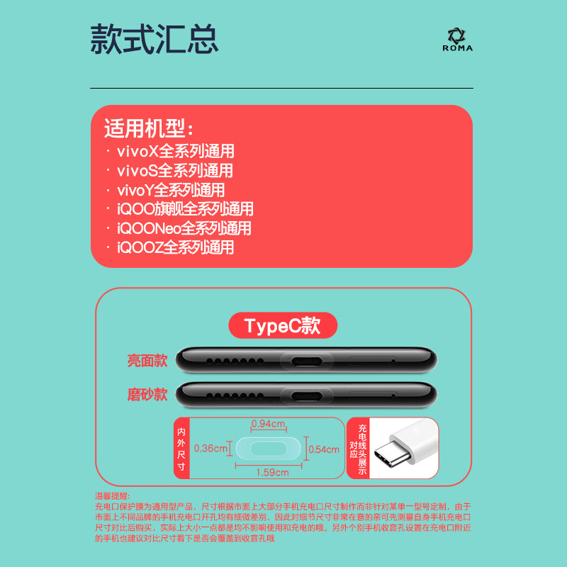 vivo S50 Pro mini手机充电口防刮保护贴膜iQOO Neo11数据口TWS5耳机X300电源口Pad5平板Z11Turbo+边框保护膜