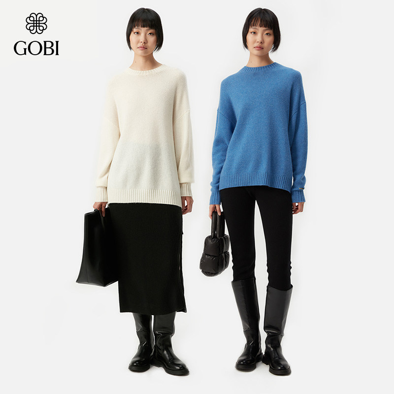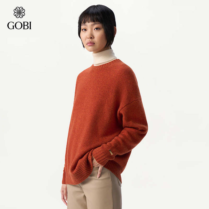 GOBI戈壁秋冬宽松休闲纯色长袖羊绒衫女士套头毛衣打底衫WK634