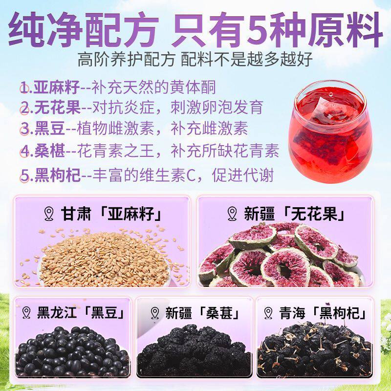 亚麻籽无花果干黄体酮黑豆枸杞桑葚养雌茶包女生泡水喝补充雌激素
